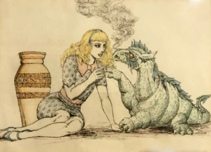 Girl with dragon by Rachel Ketchum aka Suzanne Forbes approx 1984