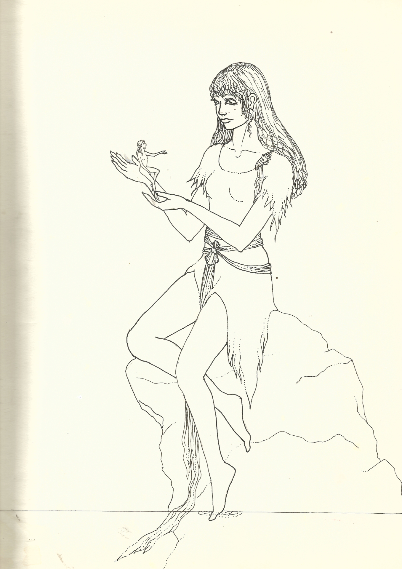 Girl with fairy by water by Rachel Ketchum aka Suzanne Forbes approx 1983