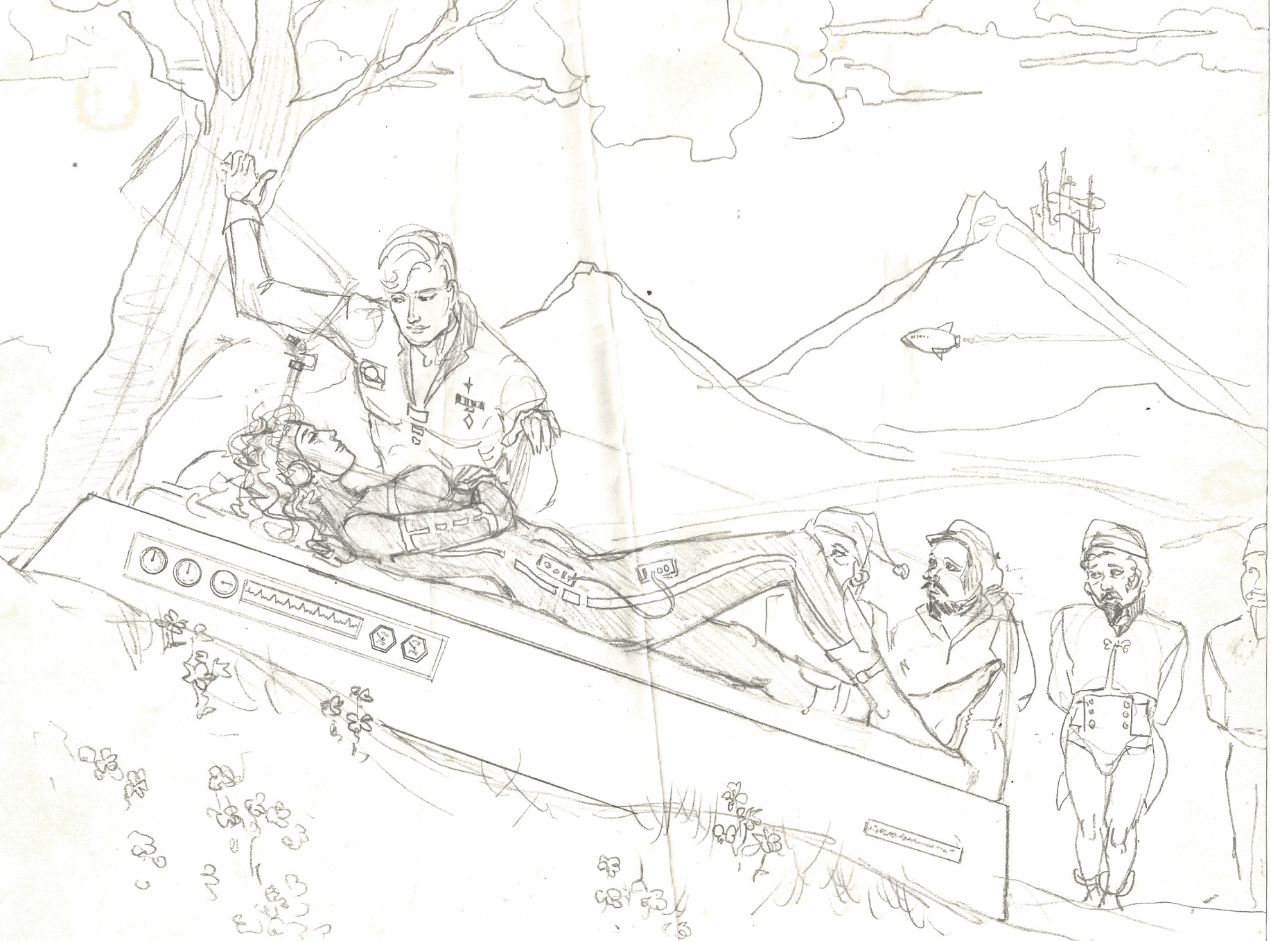 SciFi seven dwarves drawing from around 1986 by Suzanne Forbes aka Rachel Ketchum