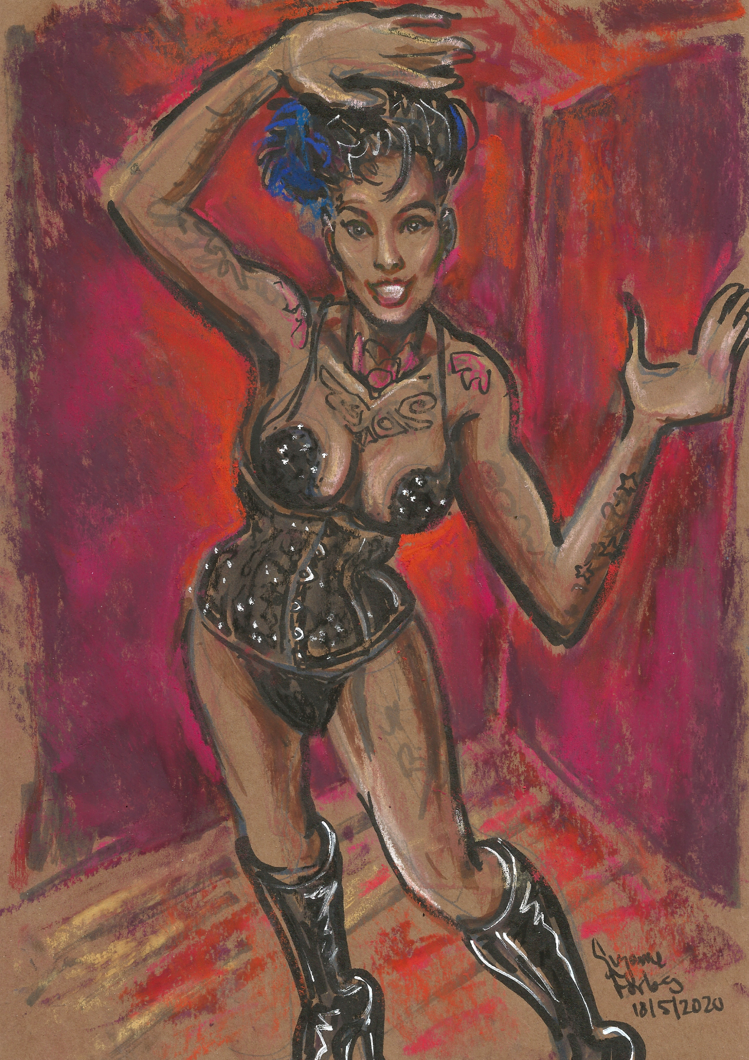 MisSa Blue performing in red room for her Birthday Extravaganza by Suzanne Forbes May 18 2020