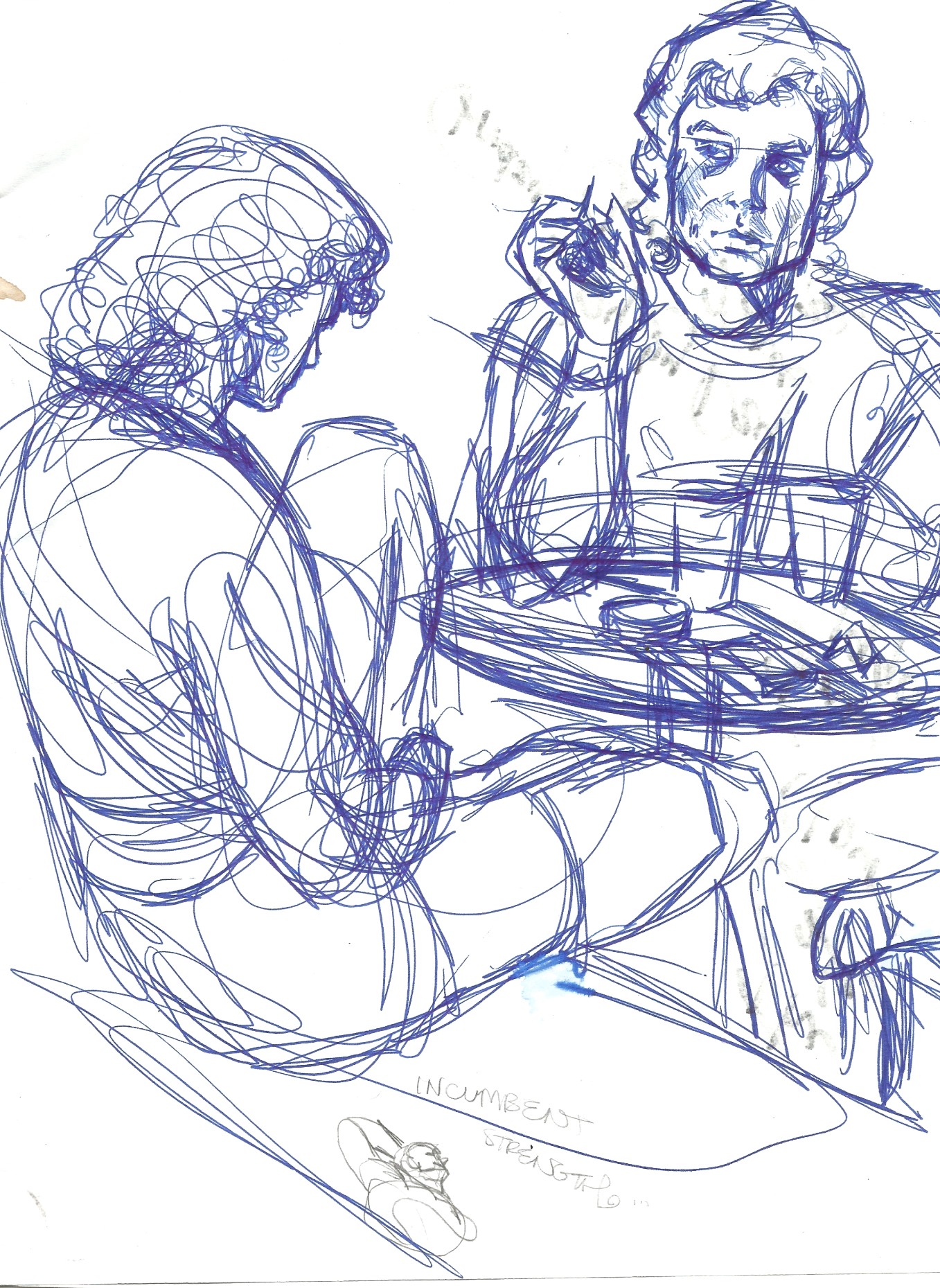 Tom at table drawing by Rachel Ketchum aka Suzanne Forbes June 1990