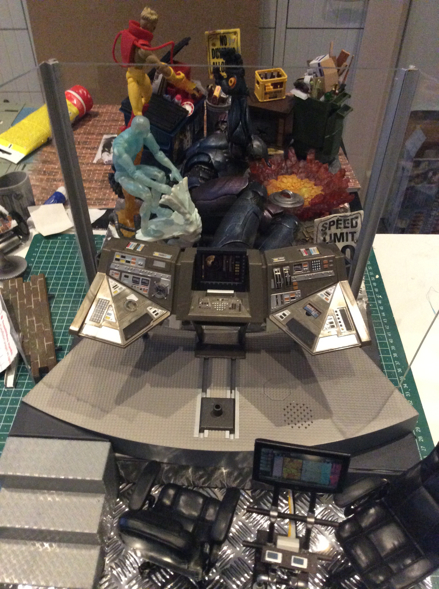 Danger Room X Men Dollhouse build with figures by Suzanne Forbes July 2020