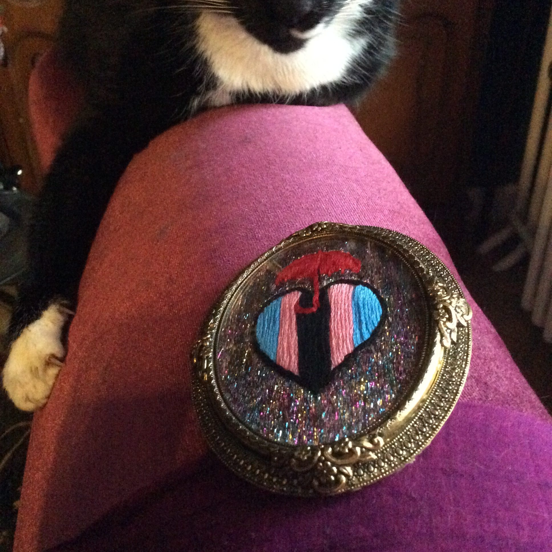 Protect Black Trans Sex Workers embroidery with holographic thread by Suzanne Forbes June 2020