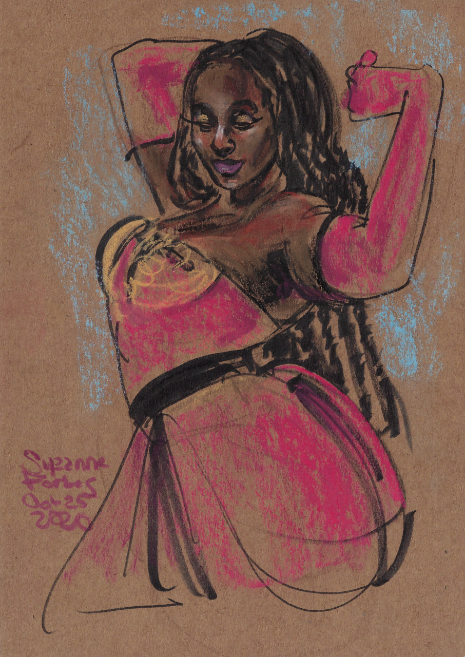 Akynos in red for Berlin Strippers Collective x Sketcherei by Suzanne Forbes oct 25 2020 sm