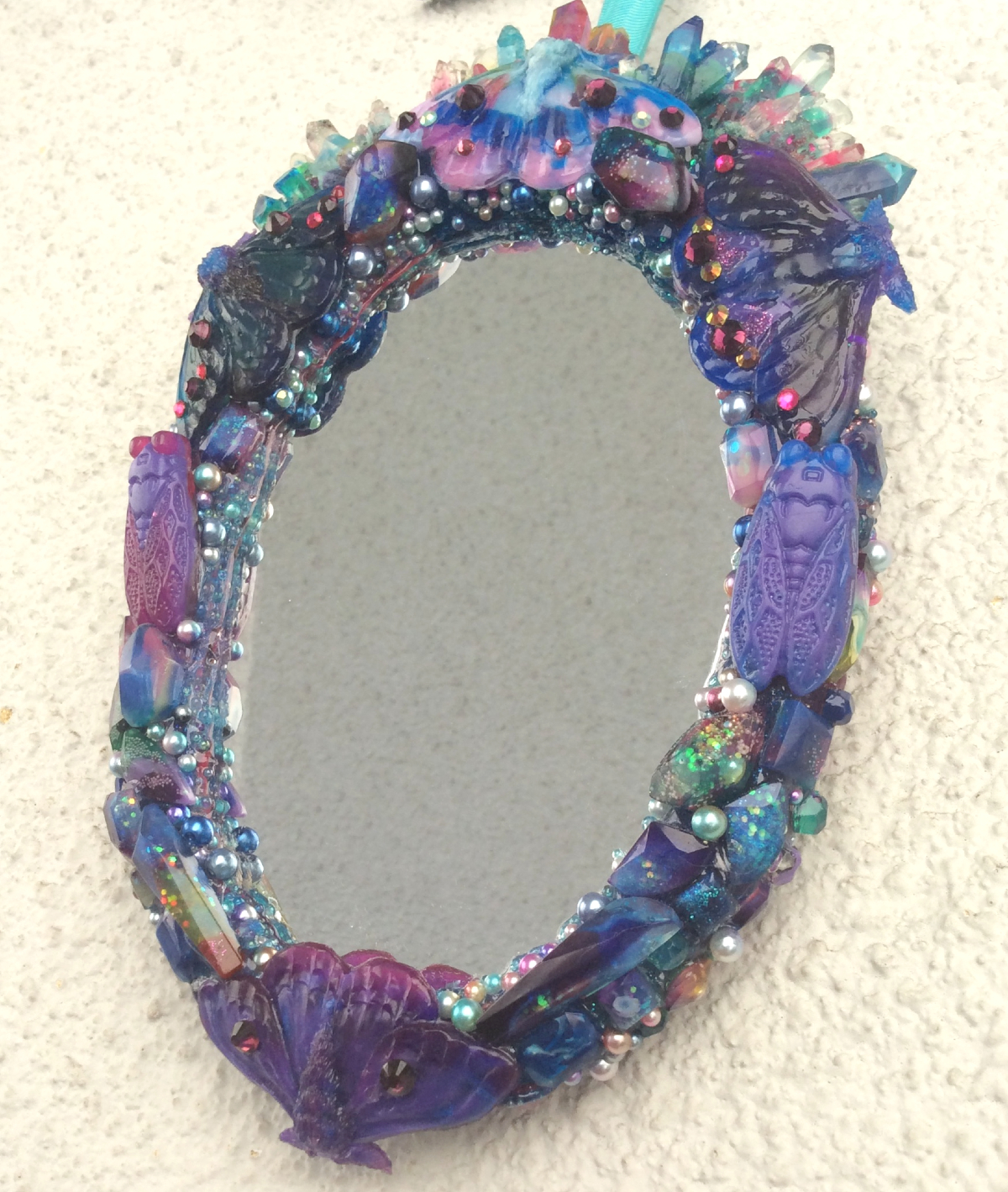 Gothic Rococo UV resin insect mirror made by Suzanne Forbes Sept 2020