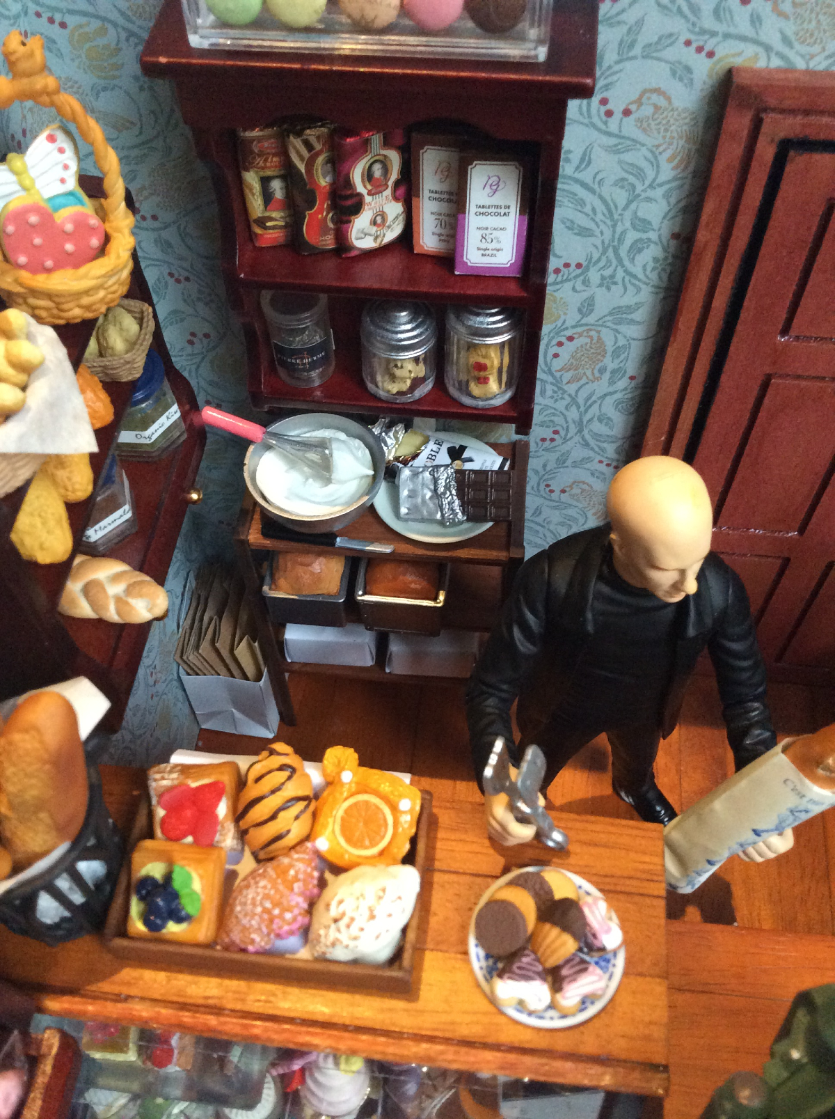 Miniature bakery roombox with Rement cake and pastry items by Suzanne Forbes March 28 2021