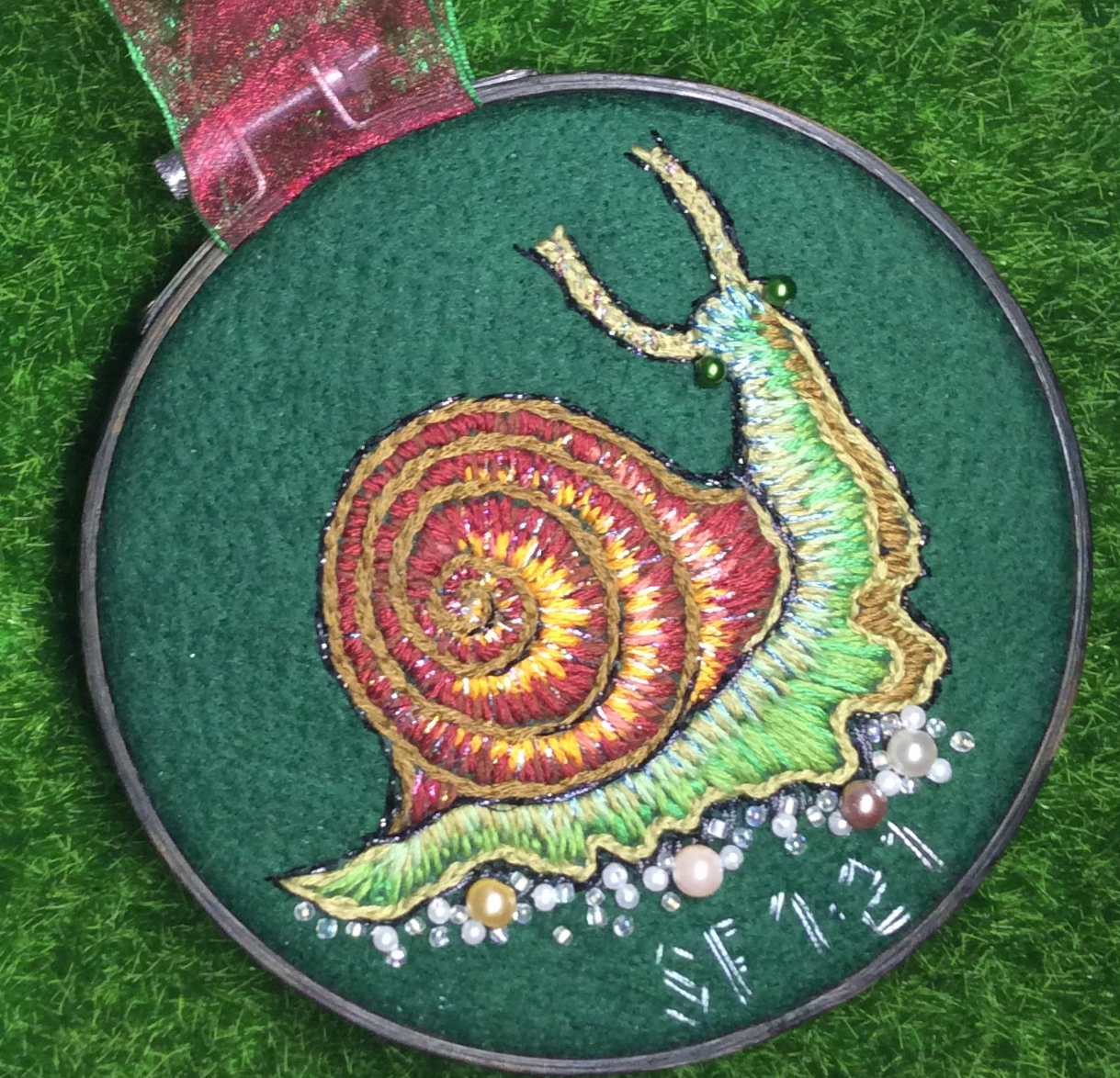 Embroidered snail by Suzanne Forbes Jan 2021 2 ← Previous Next → Embroidered snail by Suzanne Forbes Jan 2021