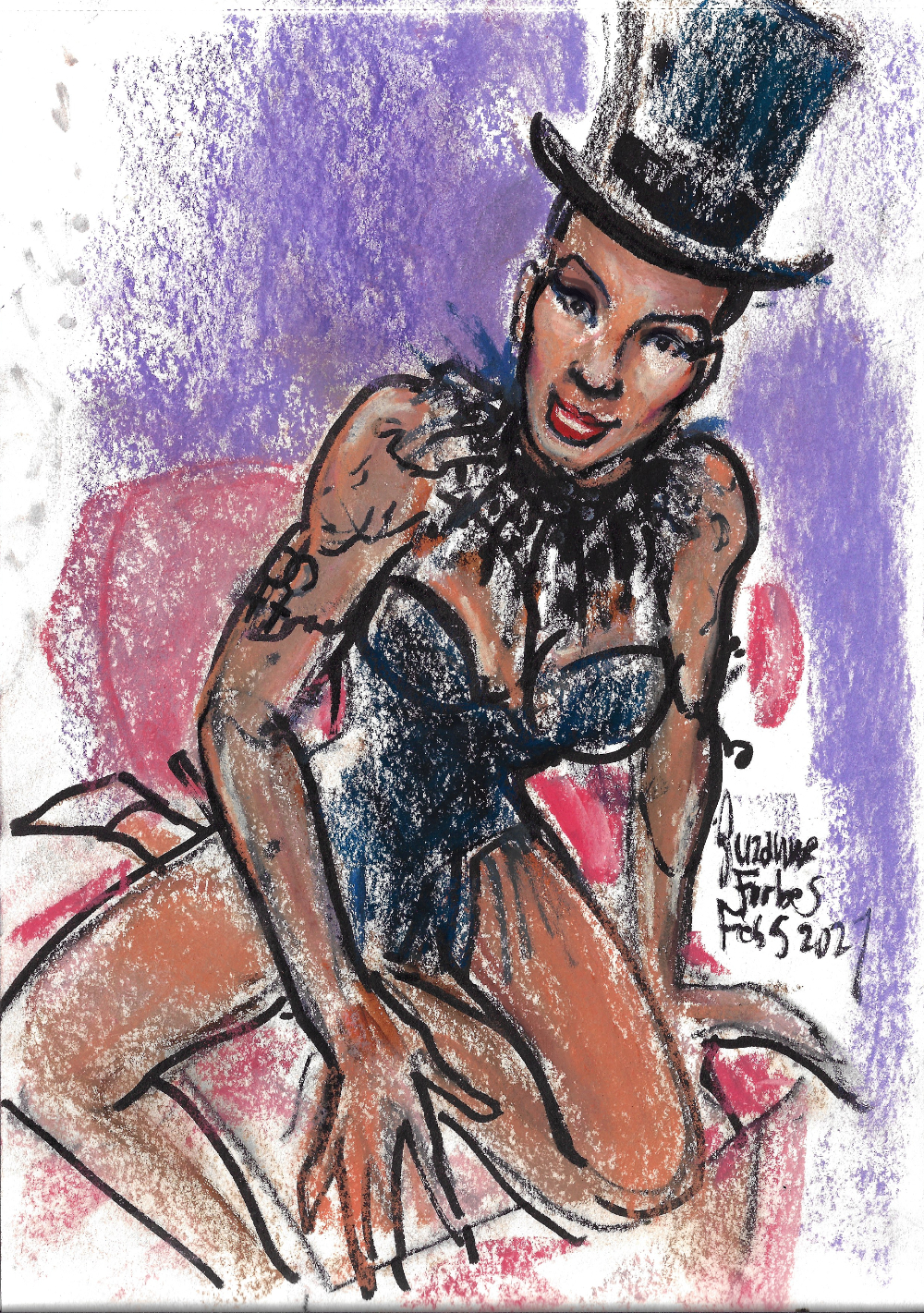 Missa modeling for 2B or Not 2B life drawing collective by Suzanne Forbes Feb 5 2020 top hat