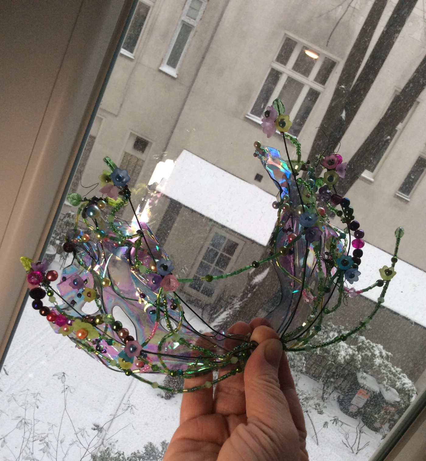 UV resin and Angelina Fantasy Film Imbolc crown in process and snowy hof by Suzanne Forbes Feb 17 2021
