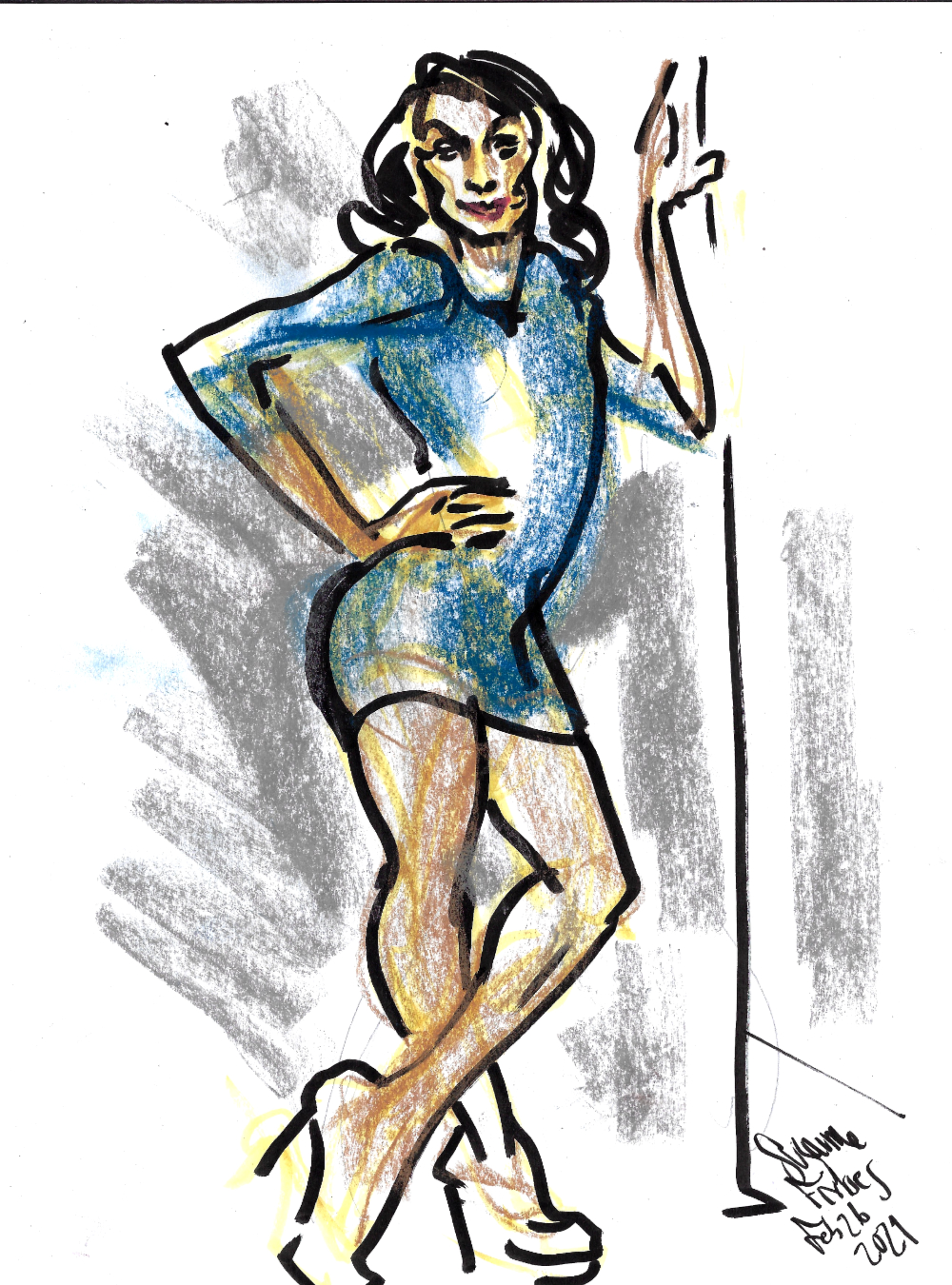 Martini for Berlin Strippers Collective by Suzanne Forbes Feb 26 2021 blue dress