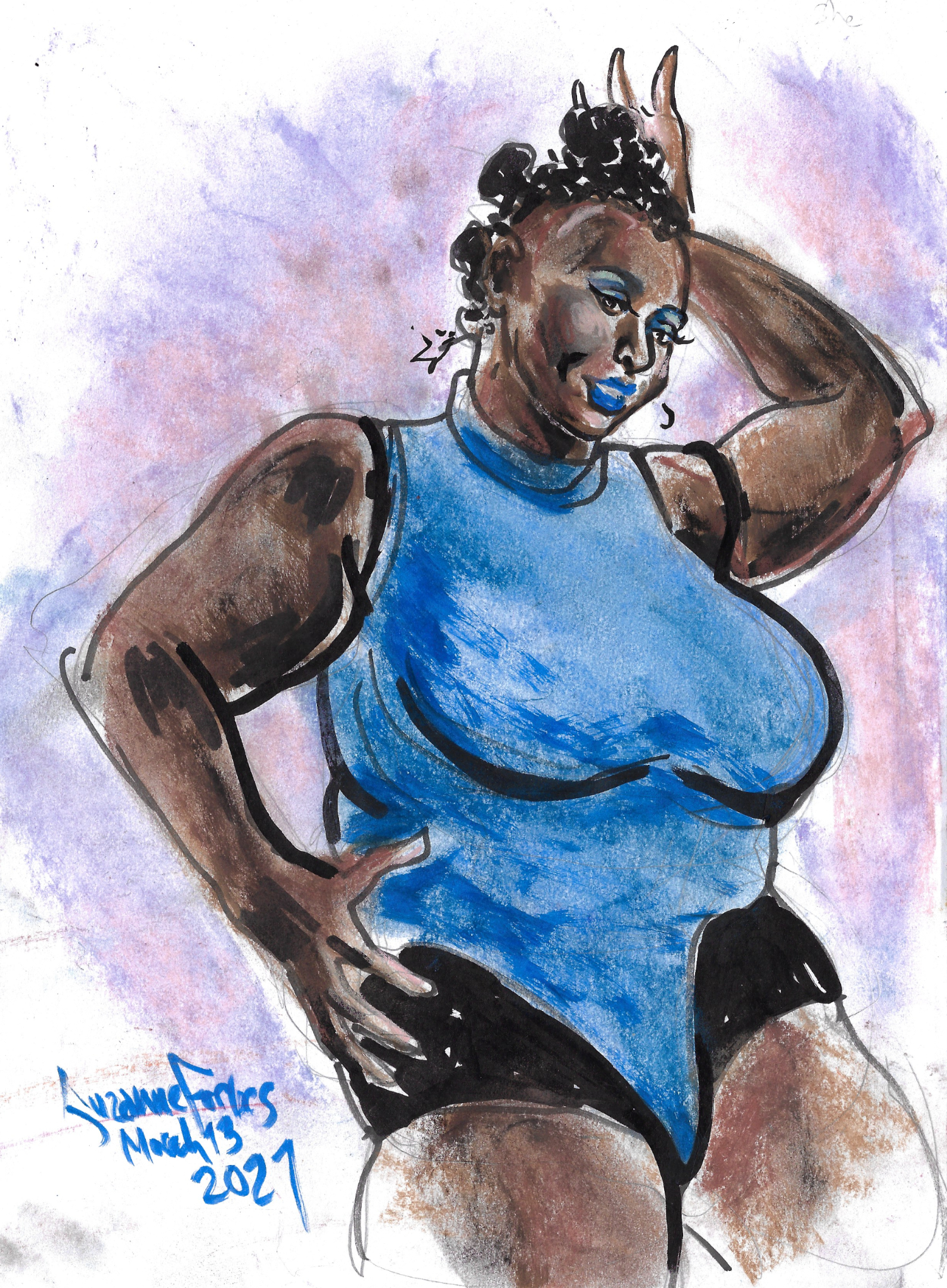 Big Fat Burlesque Lady Blue Phoenix by Suzanne Forbes March 13 2020