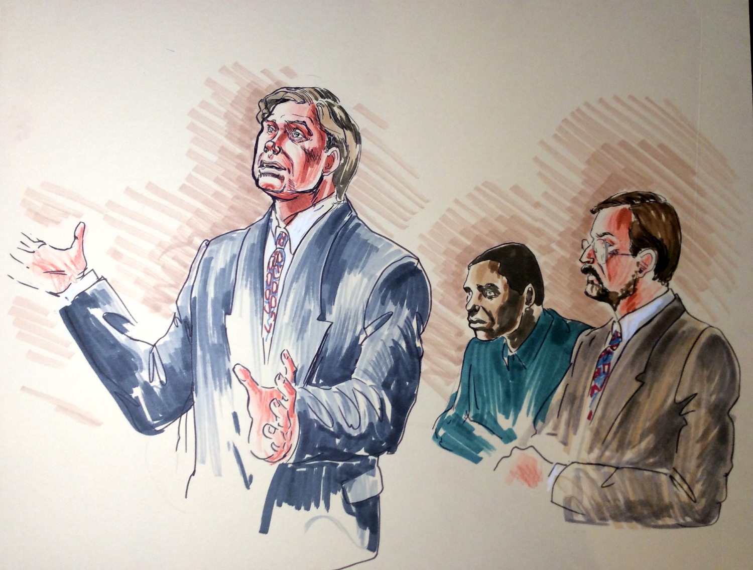 Courtroom drawing by Suzanne Forbes working as Rachel Ketchum ca 1992 1993 defense