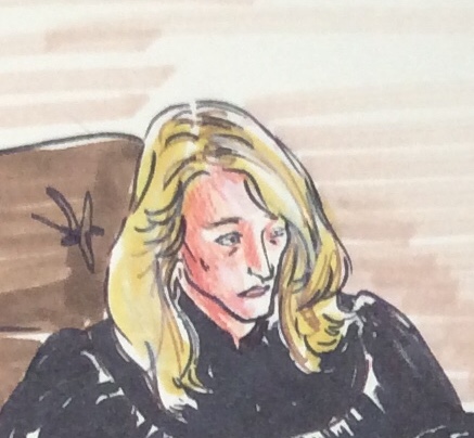 courtroom drawing detail Suzanne Forbes working as Rachel Ketchum circa 1992