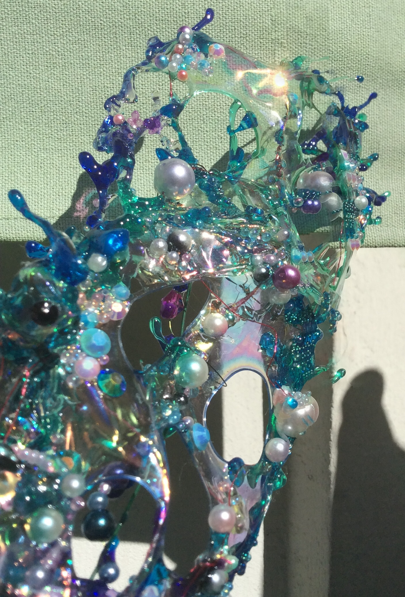 UV resin and Angelina Fantasy Film antler tentacle dendrite visor by Suzanne Forbes March 30 2021 right side