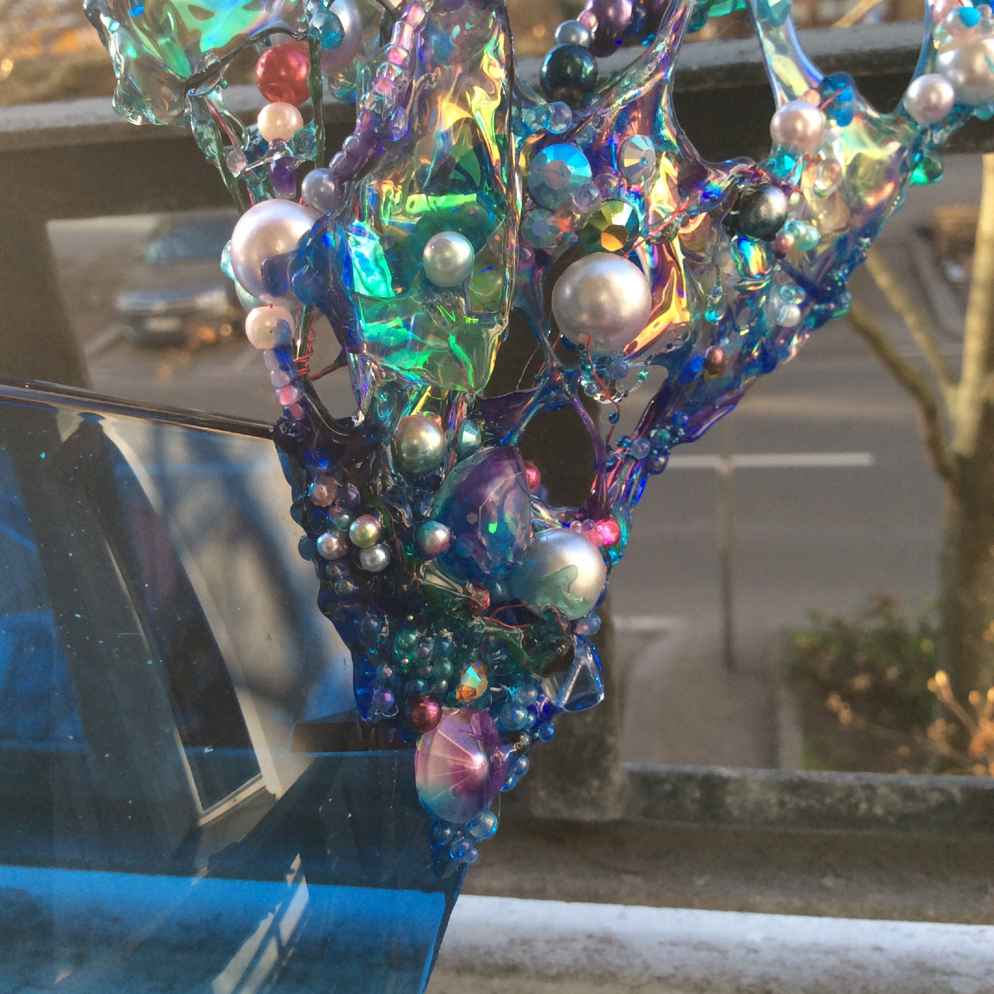 UV resin art with beads, crystals, cast resin jewels, microbeads, micropearls and droplets of tinted resin by Suzanne Forbes March 30 2021