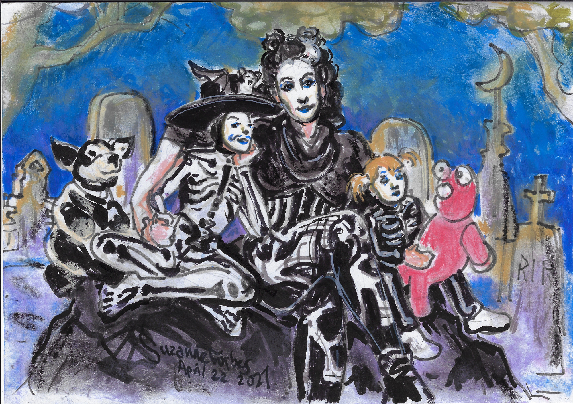 Zombie Skeleton family of Berlin in graveyard by Suzanne Forbes April 22 2021