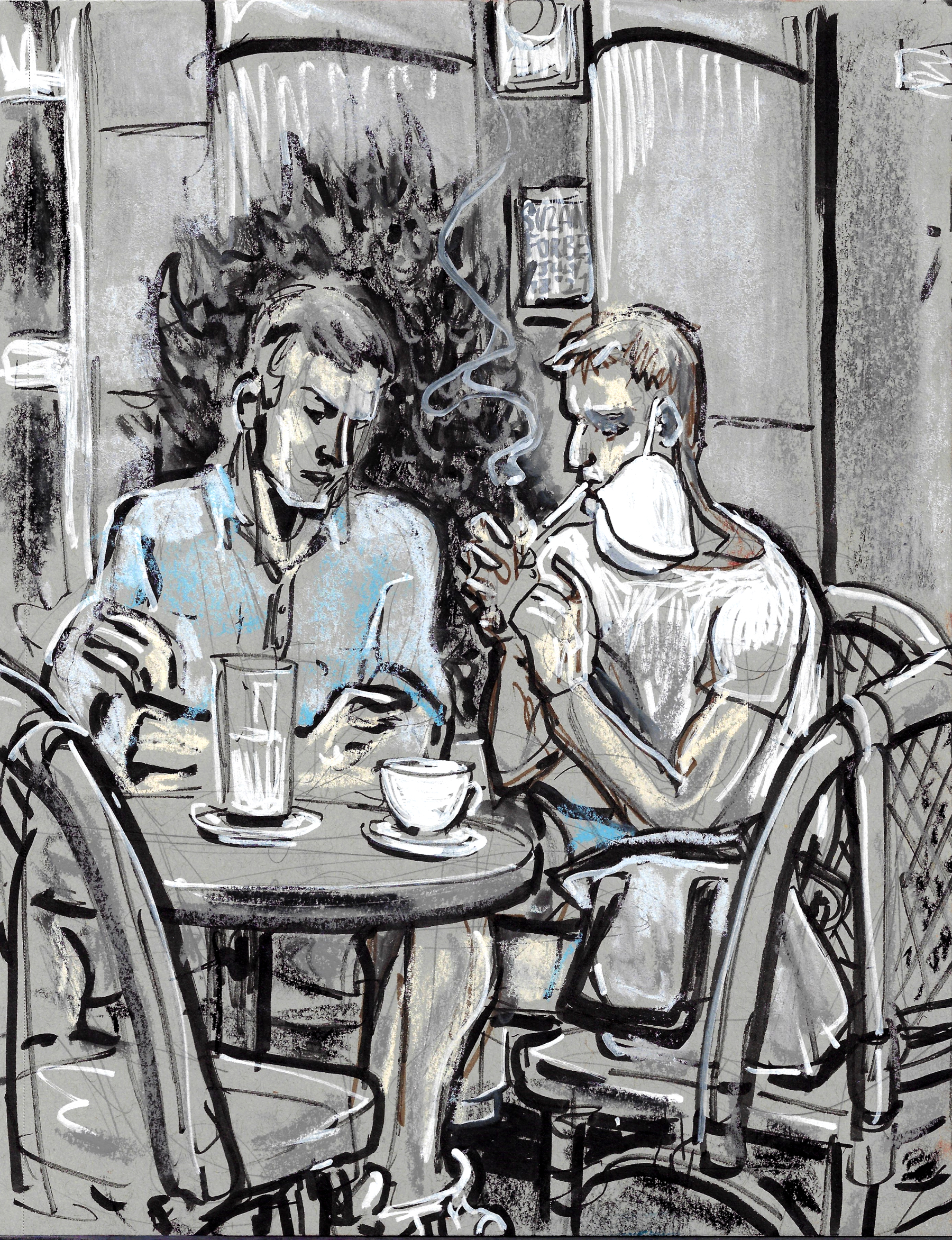 Outside Cafe Einstein West Berlin July 17 2021 seated men by Suzanne Forbes
