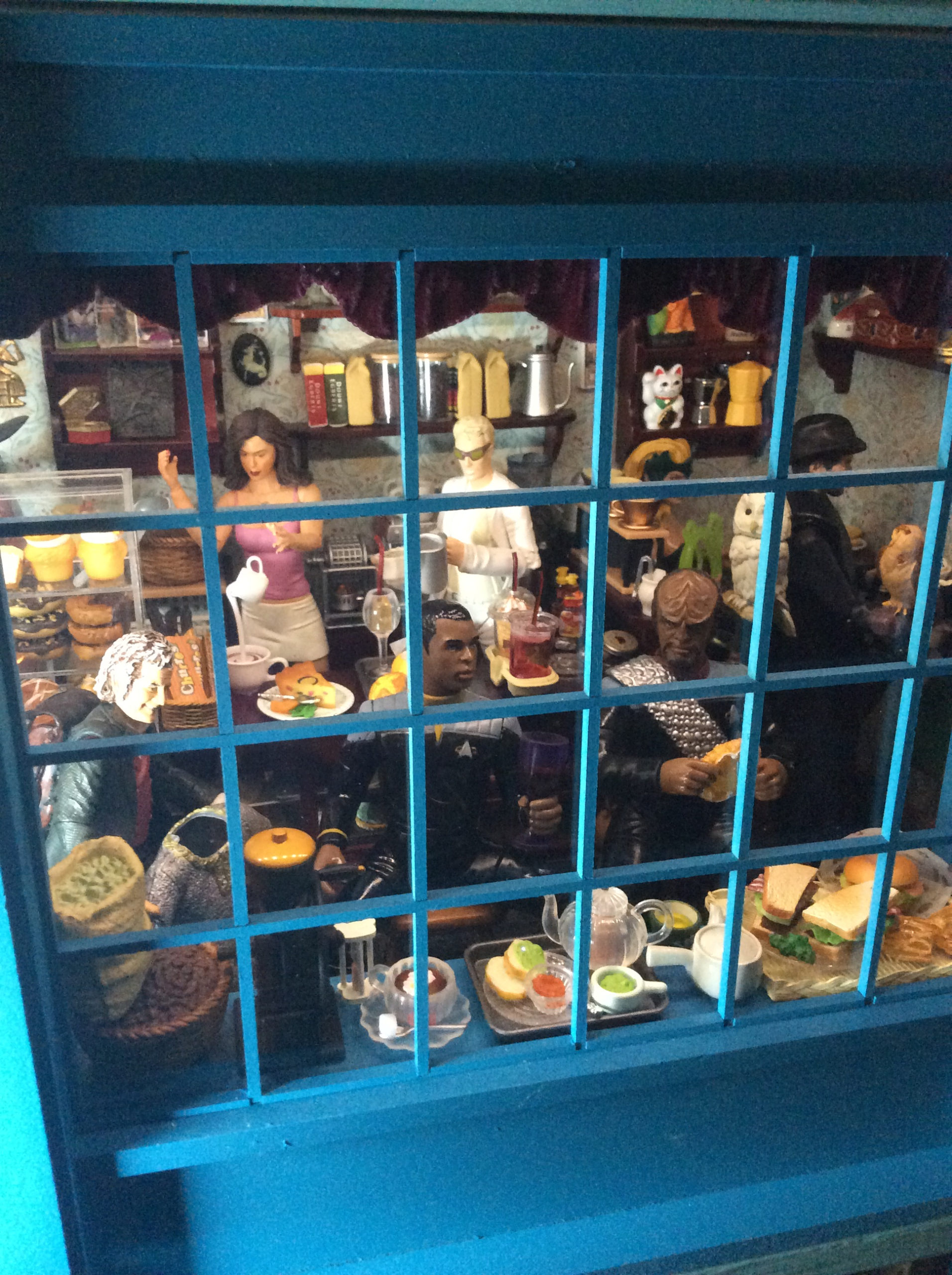 Cafe Morgana dollhouse miniature coffee roastery window by Suzanne Forbes June 2021