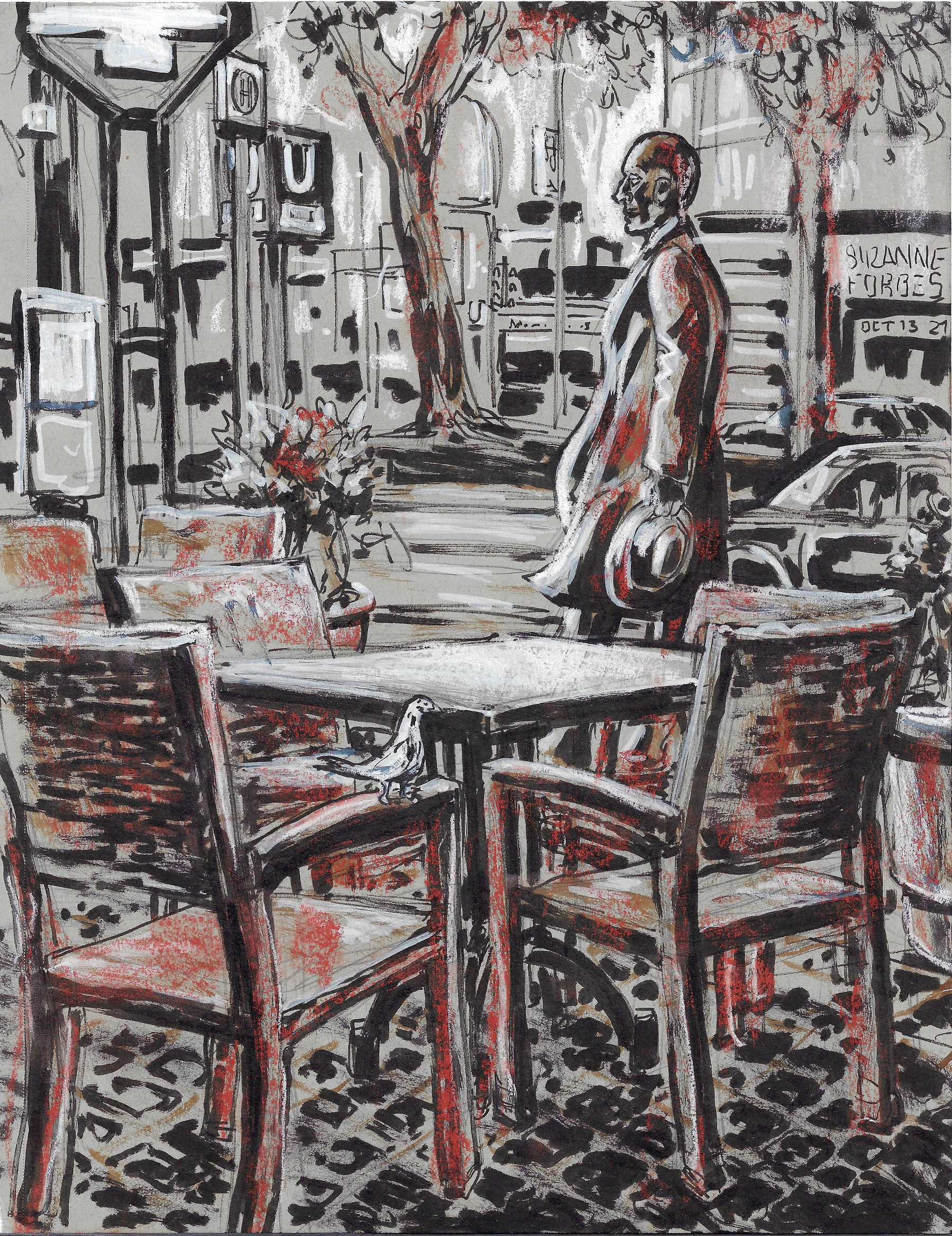 Statue of Konrad Adenauer by Helga Tiemann drawn by Suzanne Forbes Oct 15 2021