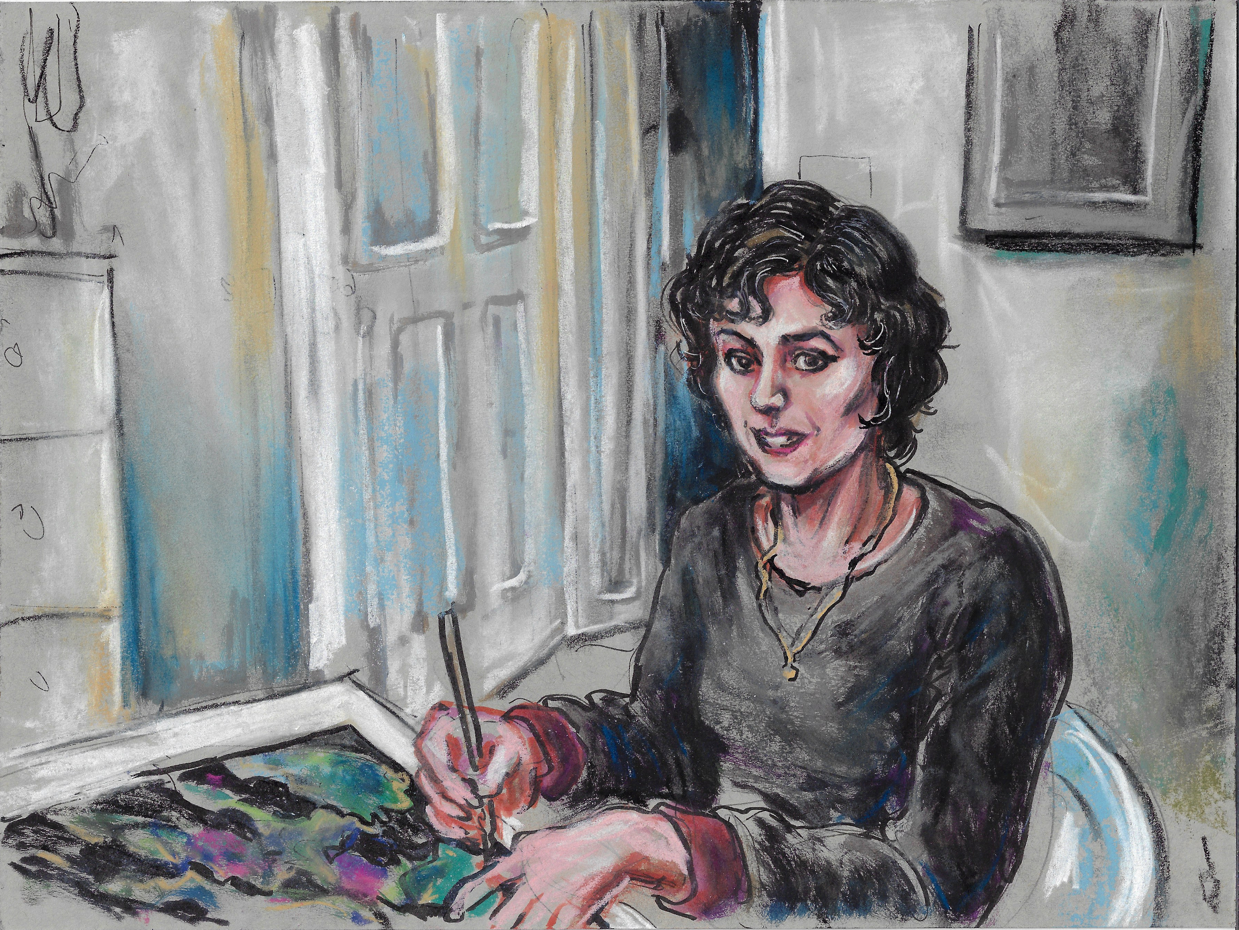 Rachael Jablo working on art for The Hysteria Project drawn by Suzanne Forbes Feb 17 2022