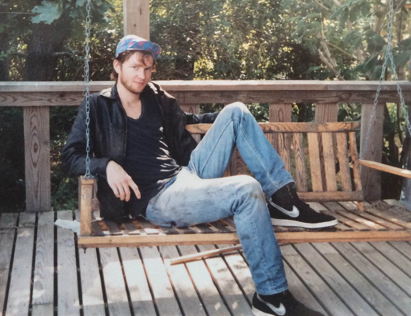 Robert Johnston Sawyer on swing in East Hampton July 1986 2