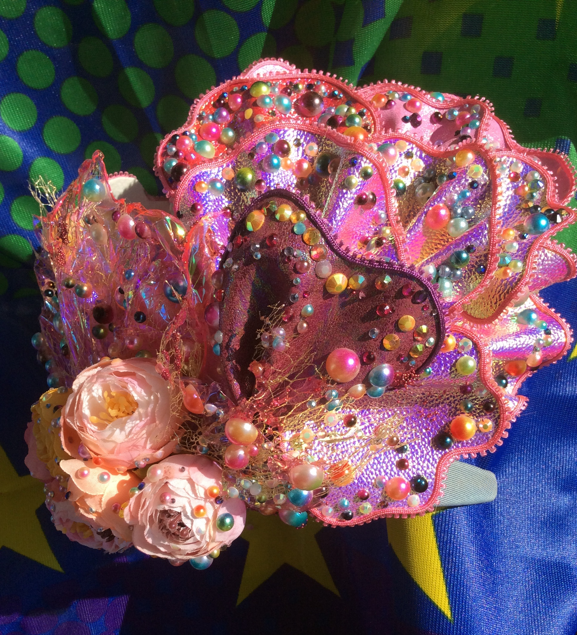 UV resin and Angelina Fantasy Film pink crown right side detail by Suzanne Forbes April 2022