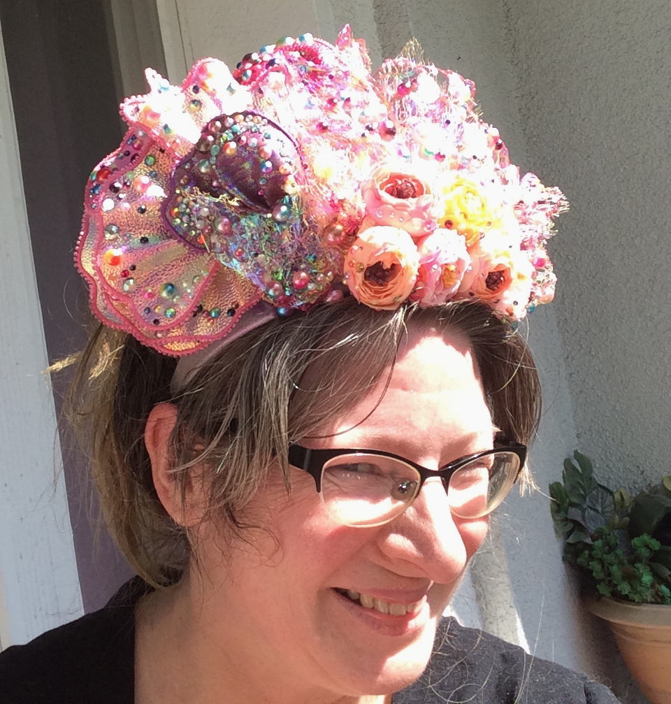 UV resin and Angelina Fantasy Film pink crown worn by Suzanne Forbes April 2022