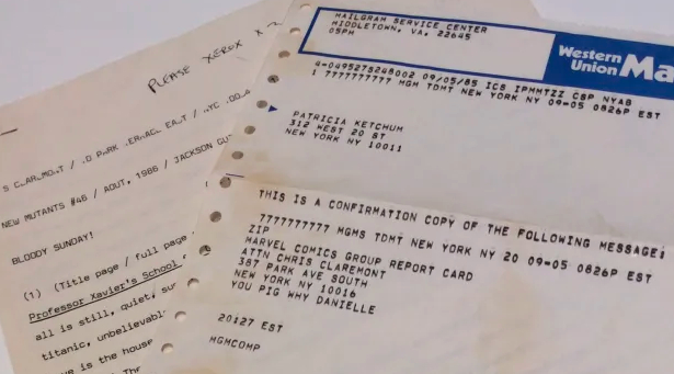 telegram to Marvel Sept 1985 from Rachel Ketchum
