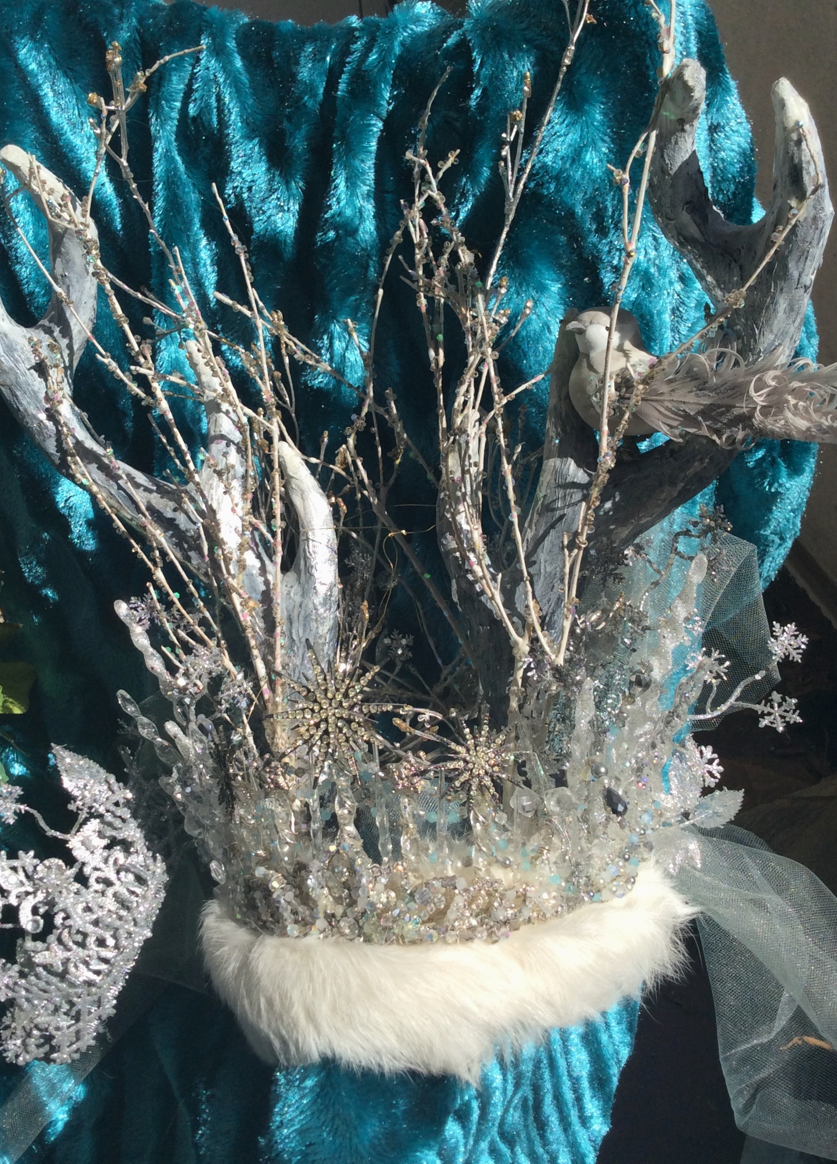 Snow Queen crown of papier mache wire rabbit fur and crystals by Suzanne Forbes 2014