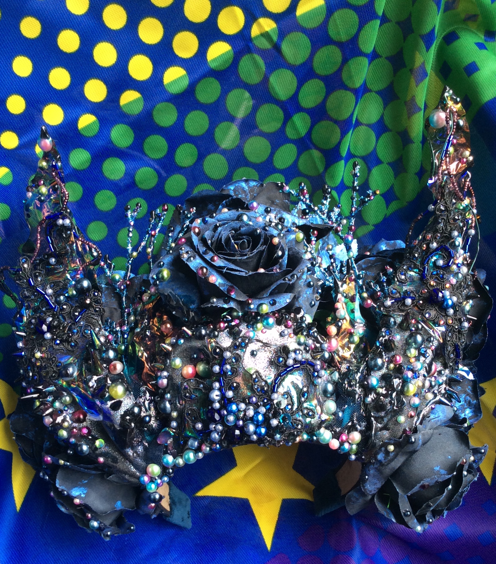 Iridescent vinyl angelina fantasy film and crystal headpiece Night by Suzanne Forbes April 2022 flag