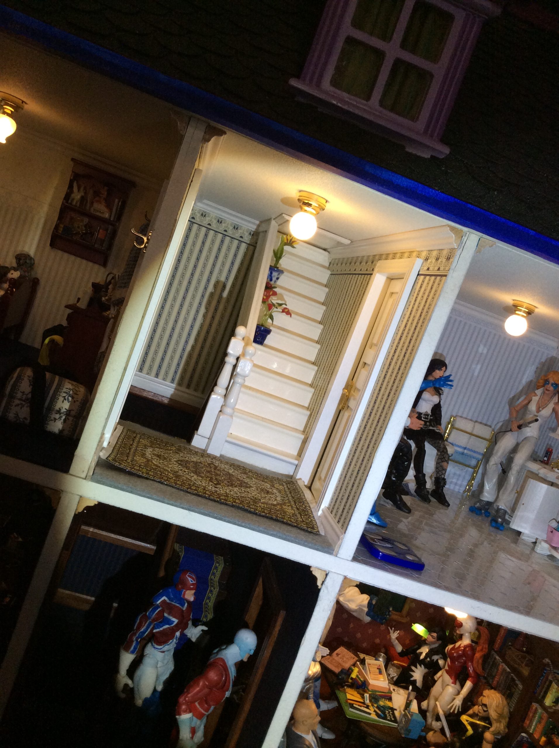 Stairs to Ororos attic X Men dollhouse by Suzanne Forbes July 2022