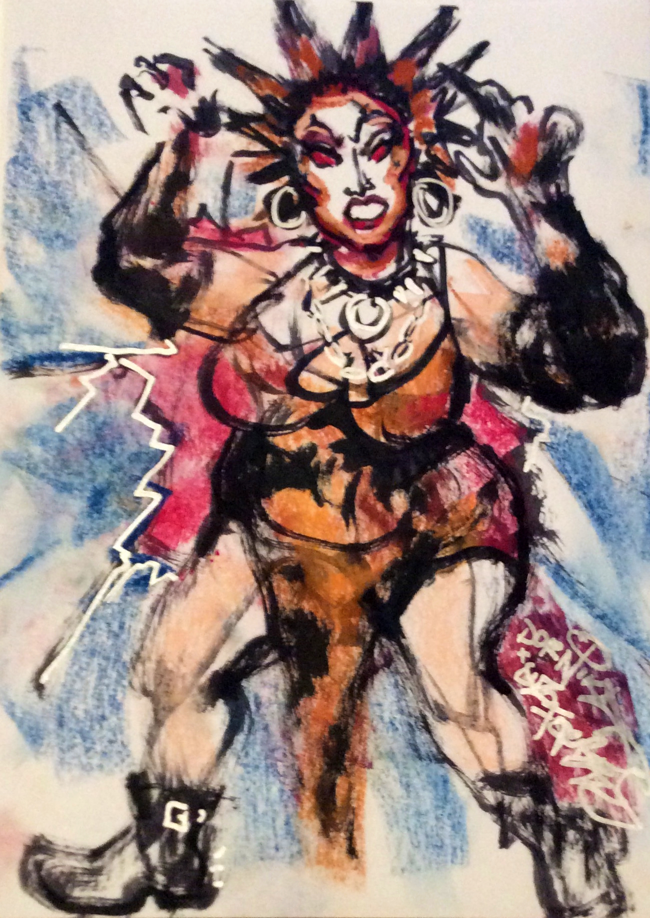 Drawing of Dornika aka ManyFacedGodx inspired by “Nobody” video.