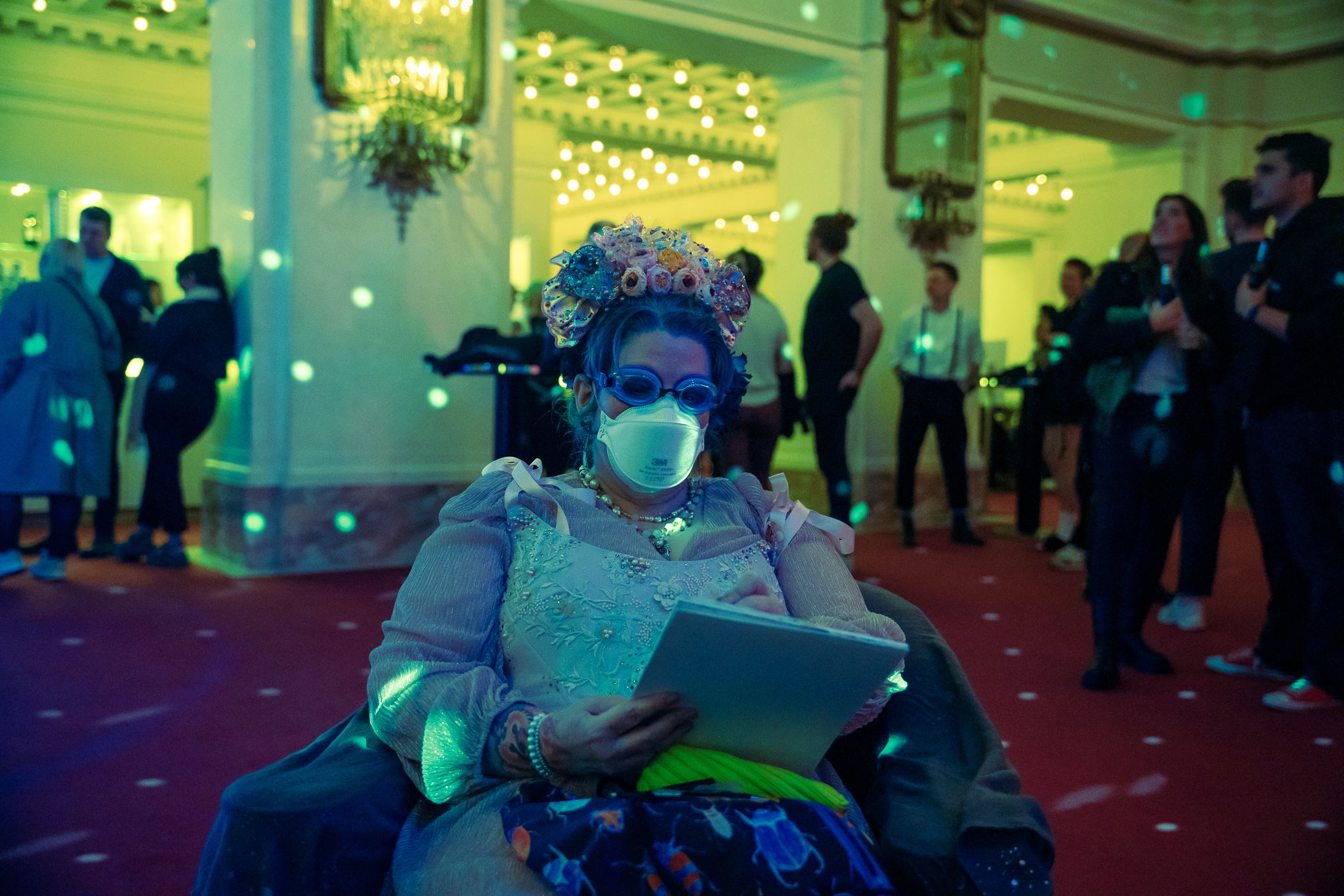 Suzanne drawing at Pansys Ringelpiez show at Theater des Westens photographed by Daniel Paikov May 2023