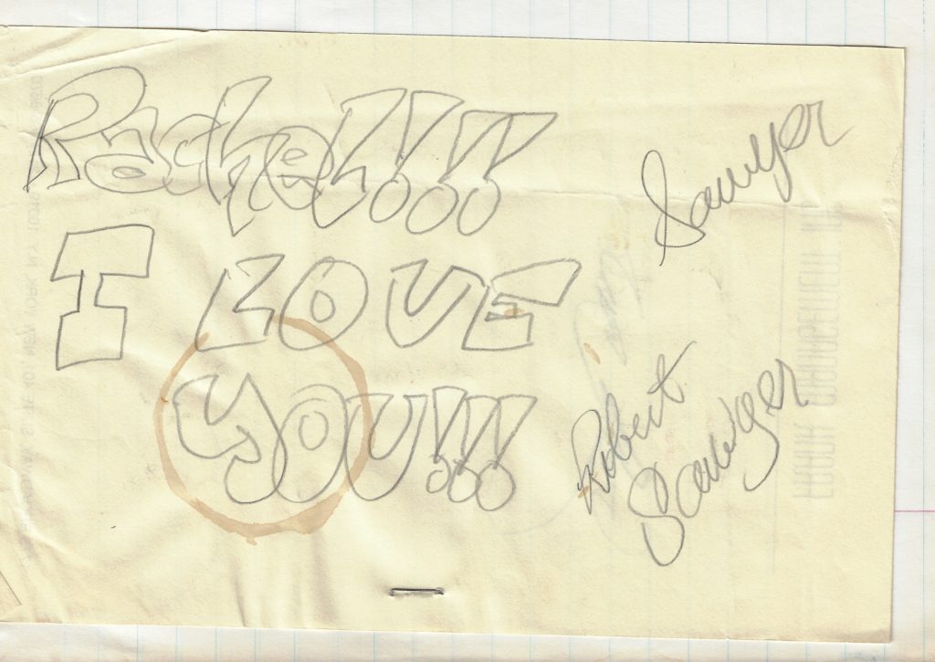 So to me he was Rob Sawyer, my great love at nineteen. He was twenty.